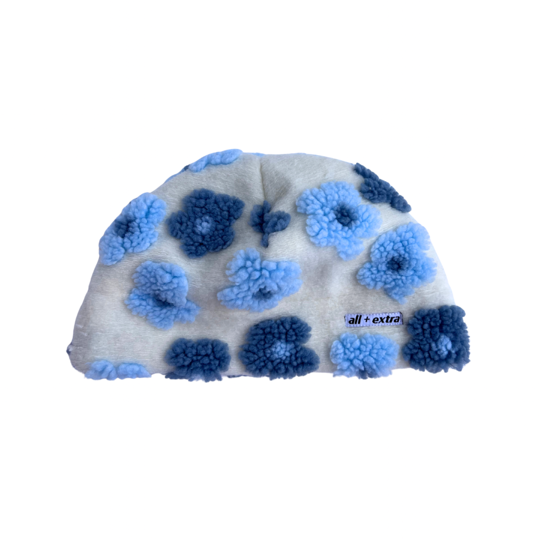 • Load image into Gallery viewer, Blue Sherpa Flower Beanie